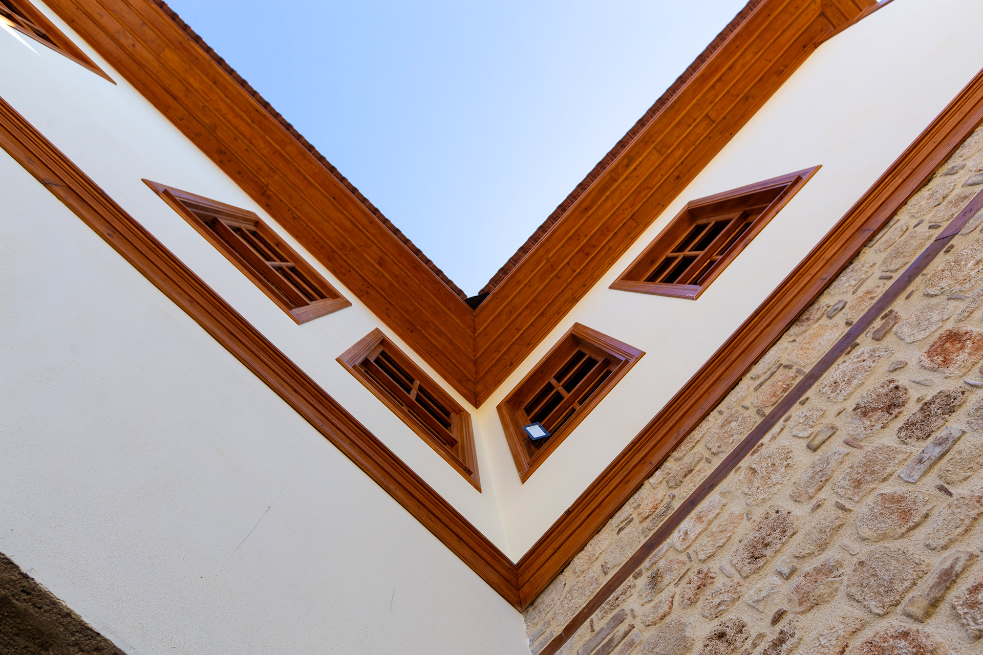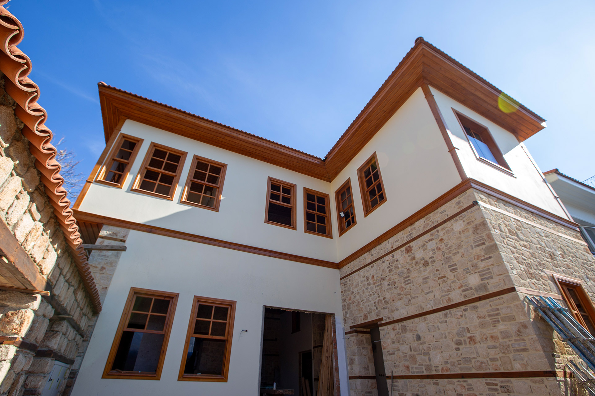 Konaklama amaçlı ve bahçeden oluşan mimari yapı; taş ve ahşap döşemeden oluşan, birinci sınıf malzemeler kullanılarak inşaa edilmiştir.